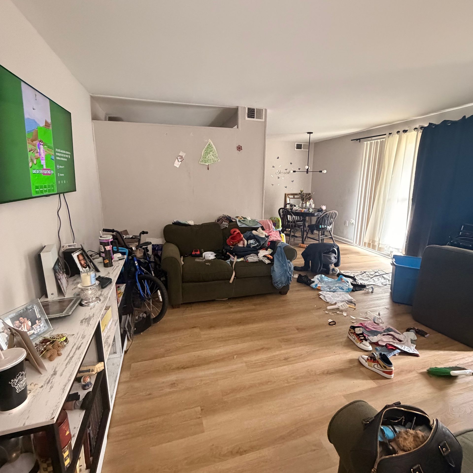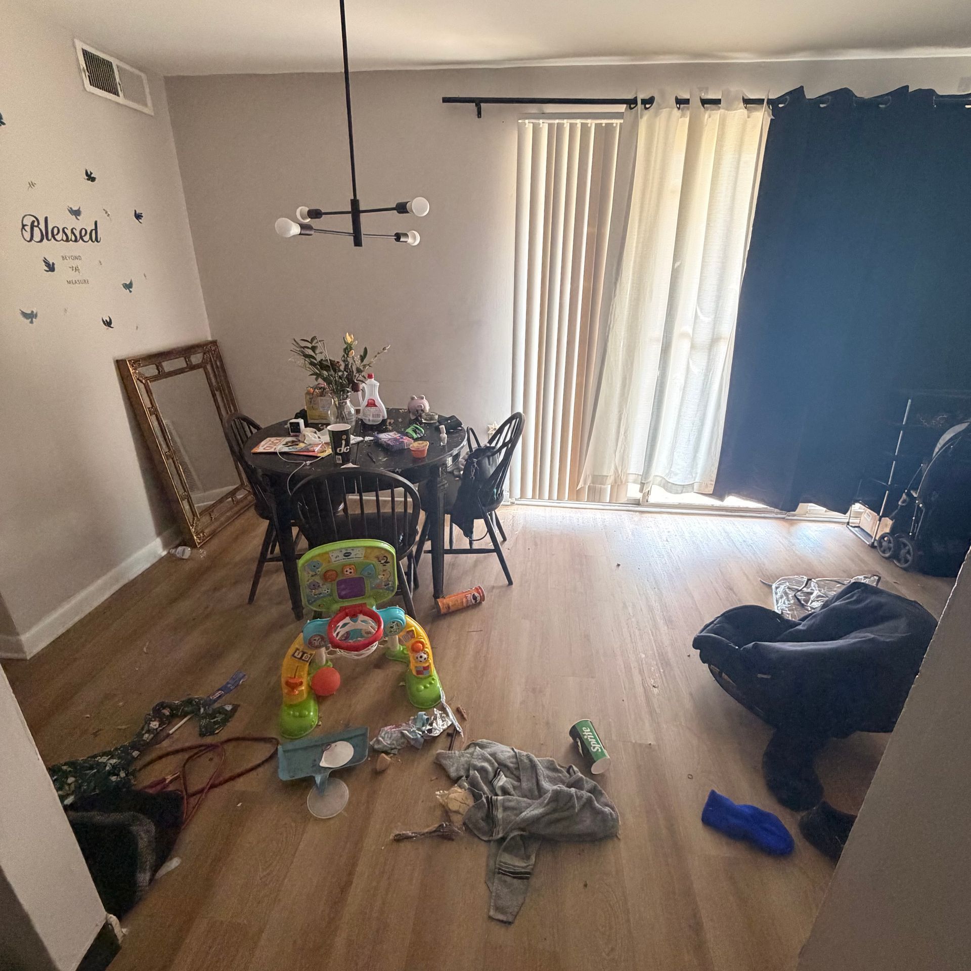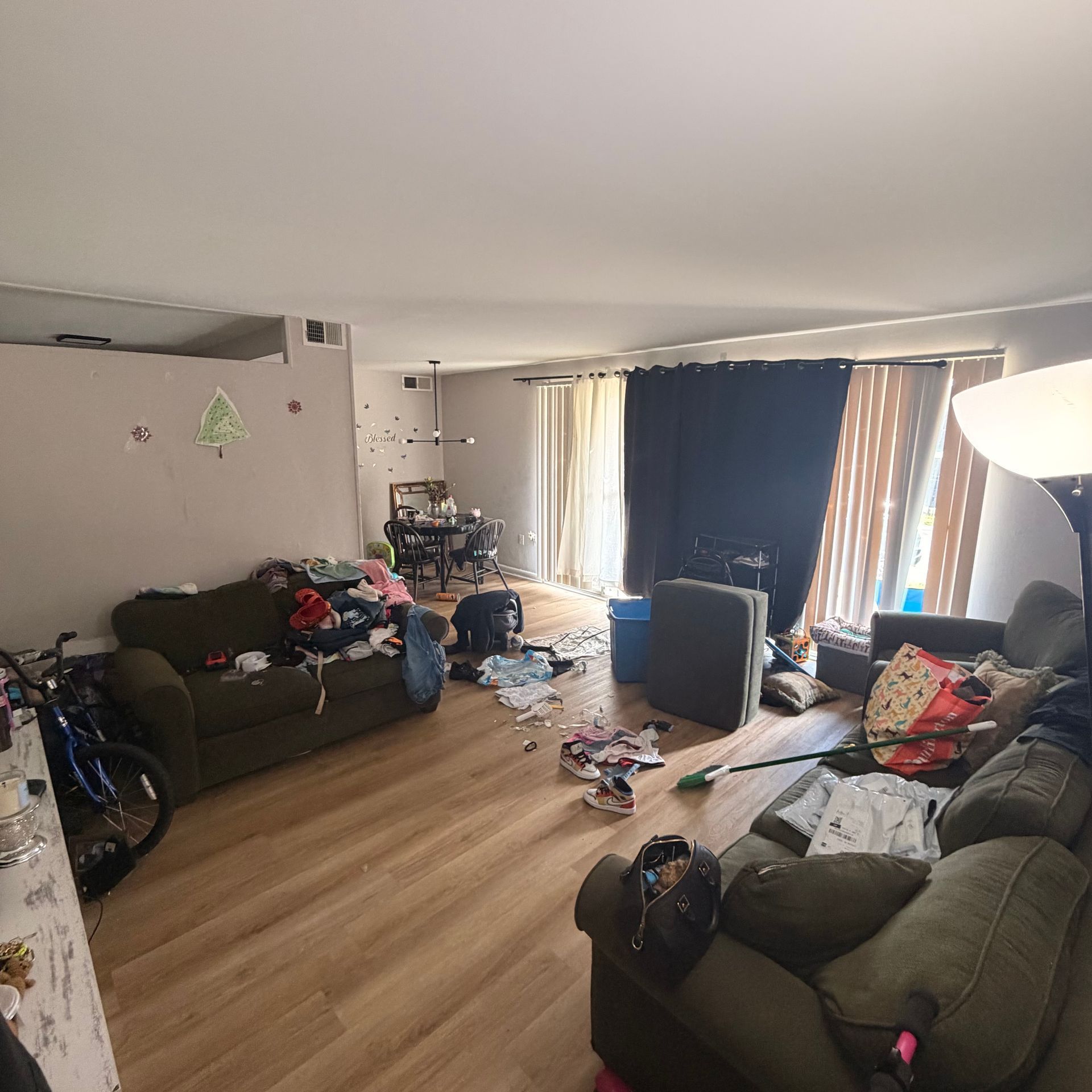 Reachable light fixtures are wiped, interior windows are cleaned to a streak-free finish, and floors beneath lightweight furniture are thoroughly addressed. Baseboards, trim, and doors are carefully washed, while walls receive detailed spot cleaning to remove buildup and marks.